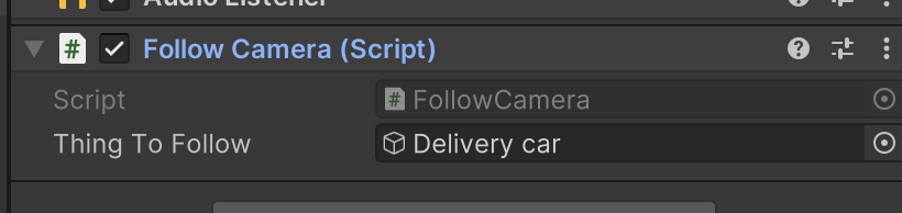 1. GameObject 형태의 thingToFollow 변수를 선언하고 [SerializeField]를 사용하여 Unity 인스펙터 창에서 해당 변수를 직접 수정할 수 있도록 허용합니다.