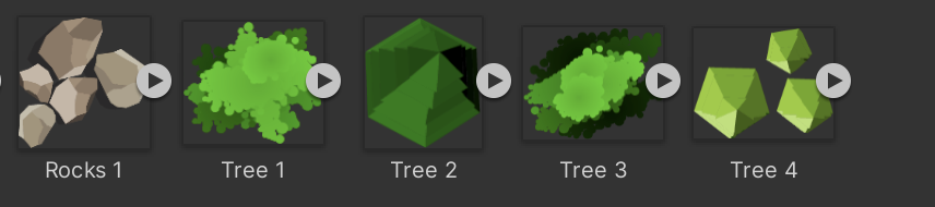 추가한 구조물들은 집 3 종류, 나무 4종류, 돌 1종류의 오브젝트가 사용되었습니다.